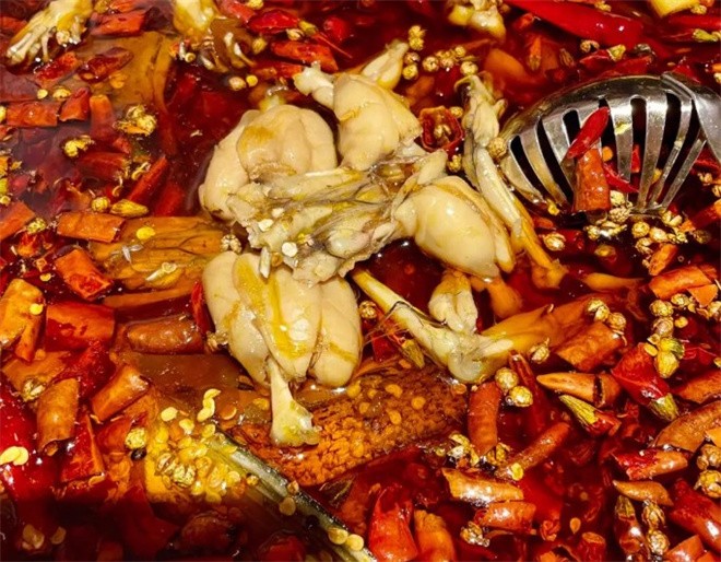 川鲜说美蛙鱼火锅凭借一锅美蛙鱼火锅圈粉无数。红锅热油浸润到蛙肉的每一寸,咀嚼间香醇鲜辣溢满唇腔,直击味蕾。只选用身形巨大、肌肉健硕的长腿美蛙,现点现杀,鲜到上桌都还在“动弹”,老板说一天能嘎300斤牛蛙,可见他们家的美蛙锅是真的很火爆。肥硕的美蛙在热辣的红油锅底里翻滚,扑面而来的香味简直让人欲罢不能,尝过一次你就会爱上。蘸上吃蛙专属调料,再浇上一勺锅底原汤,香气瞬间激发,就是纯正的川渝吃法。