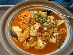 芙蓉楼湘菜茶油炒麻鸡皇这道菜用的是国宴主菜清远麻鸡,这种鸡在林间放养180天,喝露水、吃小虫,肉质鲜美、鸡味浓郁。千岛湖大鱼头煲3.5斤的大鱼头炖豆腐汤,鱼片做成酸菜鱼,一鱼两吃,汤汁浓郁鲜美。农家炖湖藕解辣必备!湖藕块头大,粉嫩口感,汤很清甜,真的是吃完还想再来一碗。腊八豆炒土鸡蛋,口味辣而不油腻。土鸡蛋味道营养健康,腊八豆嘎嘣脆,口感丰富。长沙豆腐小炒肉长沙豆腐小炒肉,麻辣鲜香,给人一种辣中带香的美味感受。