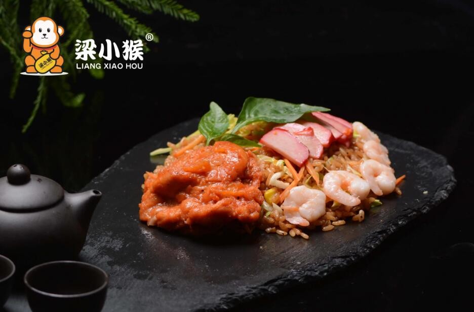 梁小猴港式铁板炒饭蒸制出的饭原汁原味,高度保留了大米营养精华蛋白质,再配以高品质食材进行个人口味喜欢好的添加,放在铁板上一炒,形成一种新形态的轻餐饮模式。