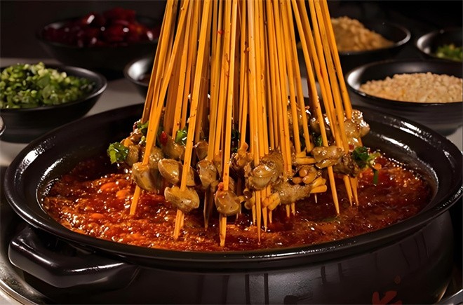 墙角角串串香根据秘方,采用多种名贵中药和调味品精制而成,其风味特有,辣而不腻,鲜美绵长,回味无穷,麻辣鲜香!