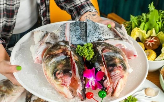 谭鱼头火锅鲤的头是从鲢鱼的头中挑选出来的。鲢鱼头大而肥,肉多骨少。据说吃肉比吃鱼好,吃鱼更贵。因此,“谭玉头”是时代的祝福。谭鱼头火锅都是用天然原料制成的,包括几十种中草药,能使食材迅速崩解成味,浓香入骨。具有强身健脑益智美容的功效。谭鱼头火锅创造性地将千年制汤与现代时尚火锅融为一体,实现传统与现代、营养与时尚、健康与养生的和谐统一、它是一种新型的能喝汤的火锅,在火锅产业中独树一帜。吃鱼头-汤-涮火锅,加上各种芝麻酱调料,美味无比。