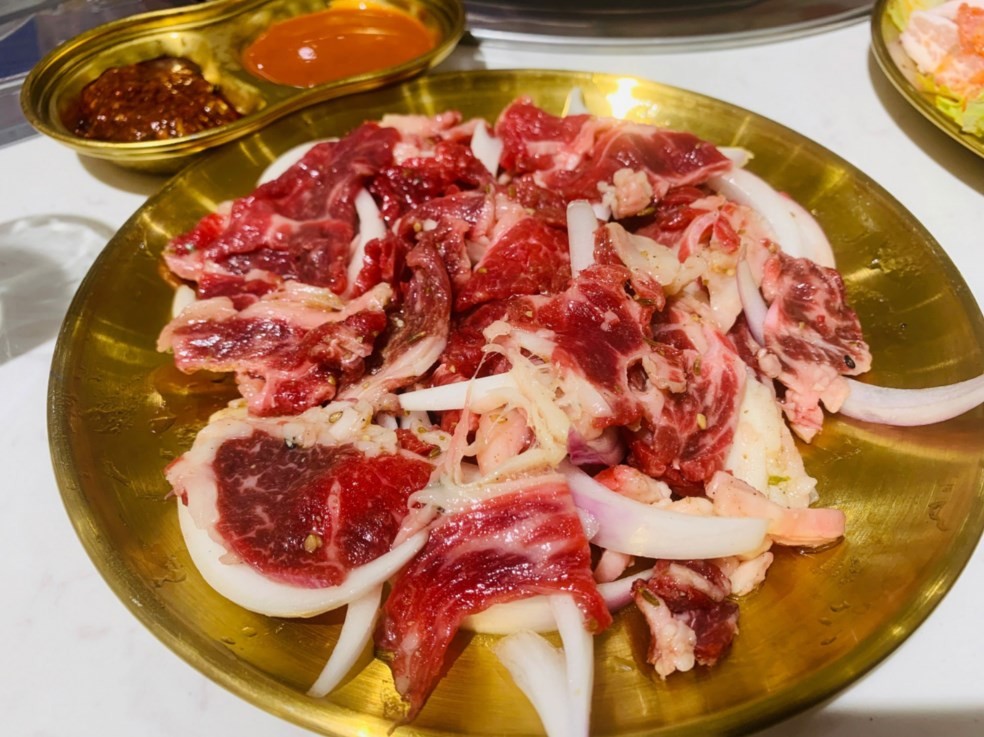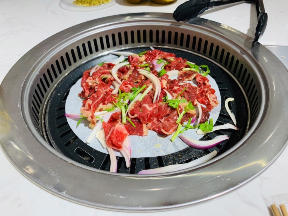 西旗大表哥炭烤鲜肉铺肉类选择丰富,且均为新鲜腌制或现切,绝非冷冻肉。三种蘸料——干辣椒、果酱和蒜蓉,为烤肉增添了丰富的层次感。牛肉都是新鲜现切现腌制的,香气四溢。搭配店主精心调制的三种秘制酱汁,每一口都是对味蕾的极致挑逗。每一口咬下去,都能感受到牛肉的鲜嫩多汁,搭配上秘制酱汁的浓郁,让人忍不住连连称赞。鲜牛五花腱,漂亮的肌肉纹理清晰可见,拷打七八分熟的时候口感最好,脆嫩有韧劲的口感真的让人欲罢不能。